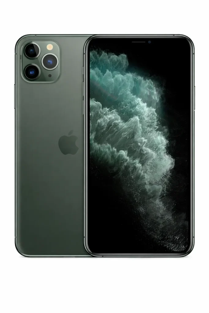 The iPhone 11 Pro Max from Apple is an upscale mobile phone with a 6.5 inches Super Retina XDR OLED screen that provides high-quality images. The device is equipped with the A13 Bionic processor for high speed and efficiency. There is a 12MP triple rear camera for taking photos and shooting videos in 4K format. The iPhone 11 Pro Max includes a 12MP front camera with the Face ID feature. The product boasts water resistance, wireless charging, stereo speakers, Night Mode, and a large battery capacity.